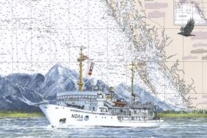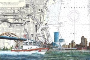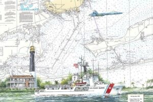 Chart Art features the beautiful artwork of artist Betty Vestuto (1935-2025). Each print offered on our website came from one of her original acrylic paintings. Betty is known for painting ships, lighthouses, and coastal scenes directly on nautical charts. Her work is especially cherished by the U.S. Coast Guard, who commissioned over 360 paintings during her career.
